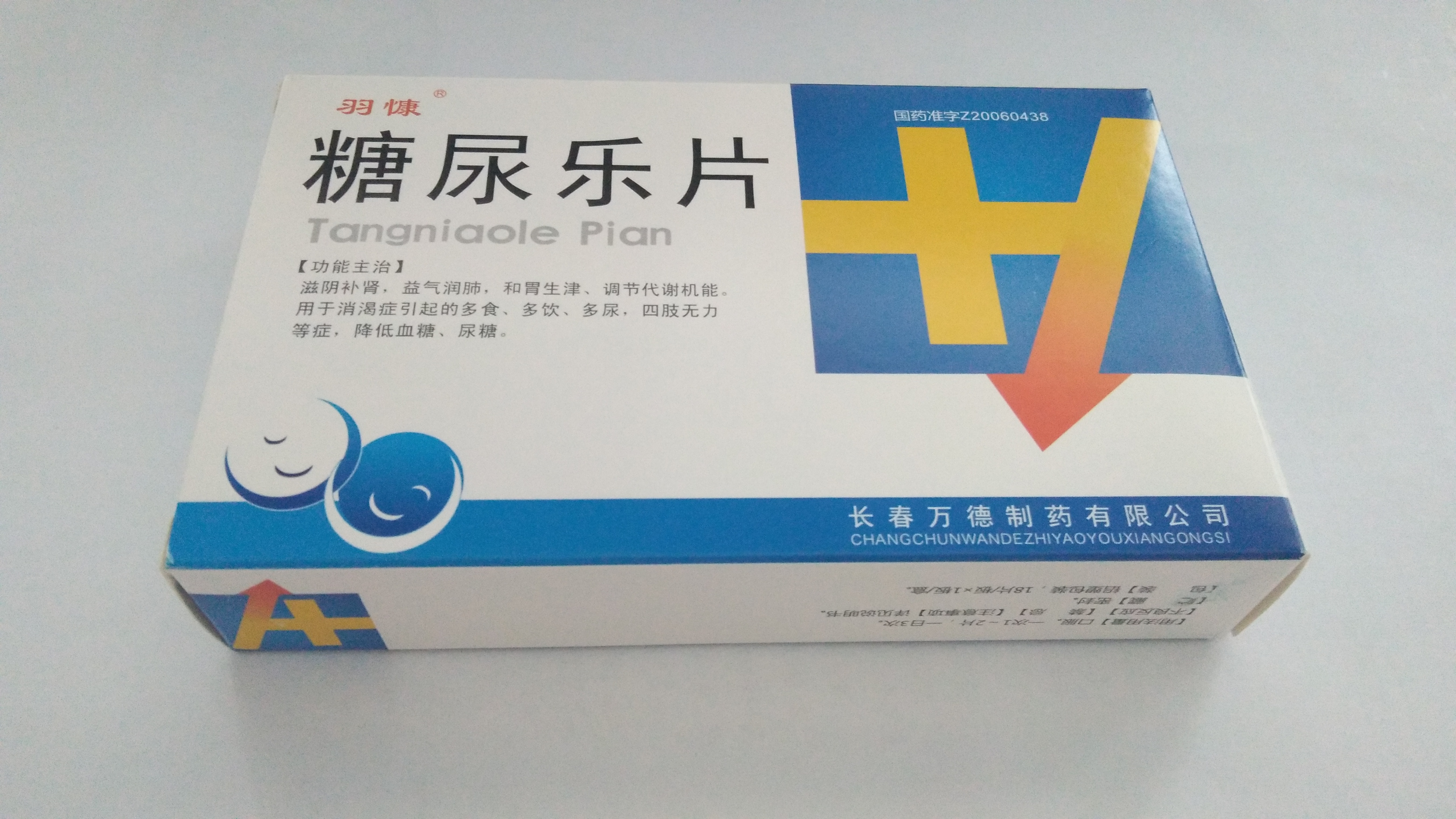 【藥品名稱】糖尿樂(lè)片 【商品名/商標(biāo)】羽慷 【規(guī)格】每片重0.62g 【主要成份】天花粉,紅參,山藥,黃芪,地黃,枸杞,知母,天冬,茯苓,山茱萸,葛根,五味子,雞內(nèi)金(炒)。 【性狀】本品為薄膜衣片,除去包衣后顯灰黃色至灰褐色;味辛、微苦。 【適應(yīng)癥】滋陰補(bǔ)腎,益氣潤(rùn)肺,和胃生津,調(diào)節(jié)代謝機(jī)能。用于消渴癥引起的多食,多飲,多尿,四肢無(wú)力等癥,降低血糖,尿糖。 【用法用量】口服。一次1~2片,一日3次。 【注意事項(xiàng)】嚴(yán)忌含糖食物,煙酒。 【貯藏】密封。 【包裝】鋁塑包裝,18片/板×1板/盒 【有效期】36個(gè)月 【生產(chǎn)廠家】長(zhǎng)春萬(wàn)德制藥有限公司 【批準(zhǔn)文號(hào)】國(guó)藥準(zhǔn)字Z20060438 【生產(chǎn)地址】長(zhǎng)春九臺(tái)經(jīng)濟(jì)開發(fā)區(qū)群英大路666號(hào) |